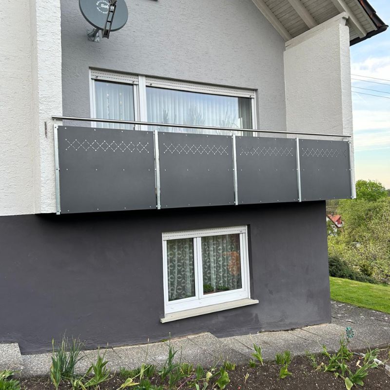 Balkongeländer mit Alublech und Edelstahlhandlauf
