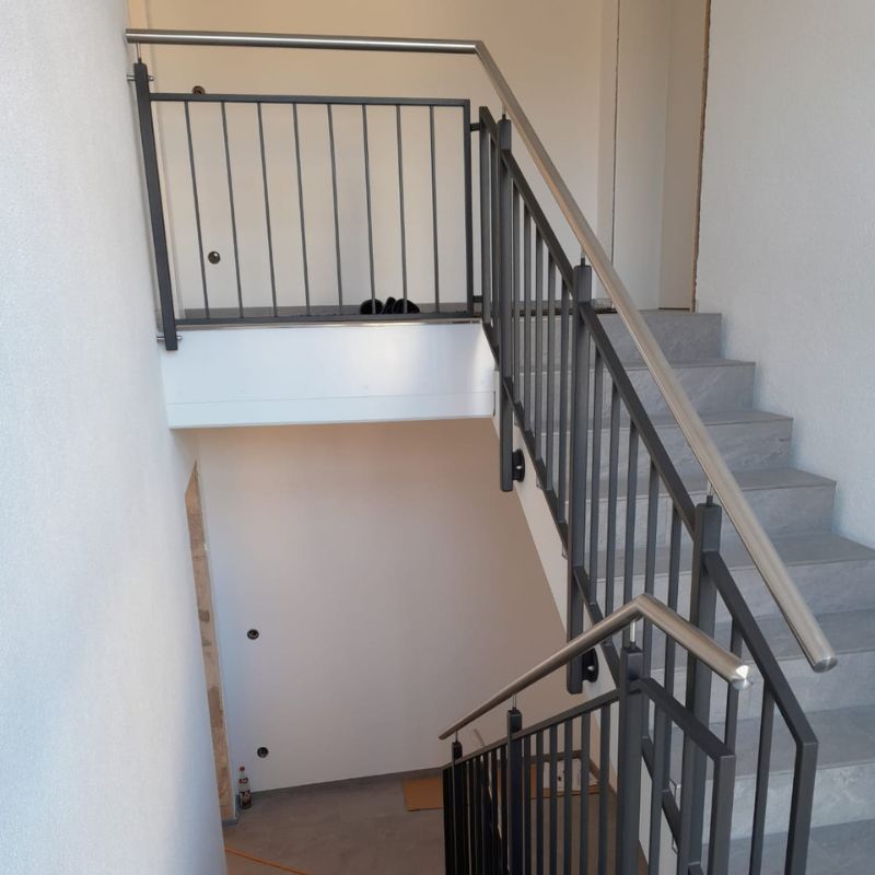 Treppengeländer pulverbeschichtet mit Edelstahlhandlauf